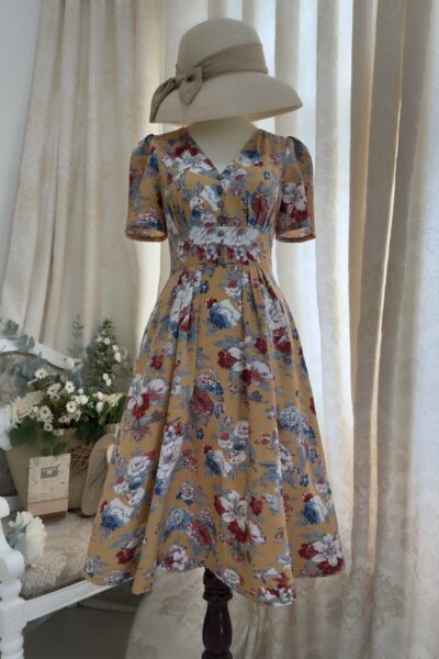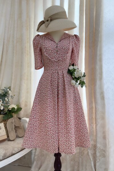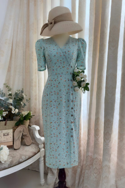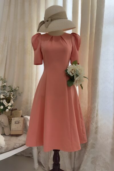 Đầm cổ khoá tay ngắn – có đệm vai mỏng, tùng 8 mảnh.