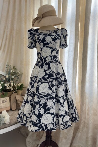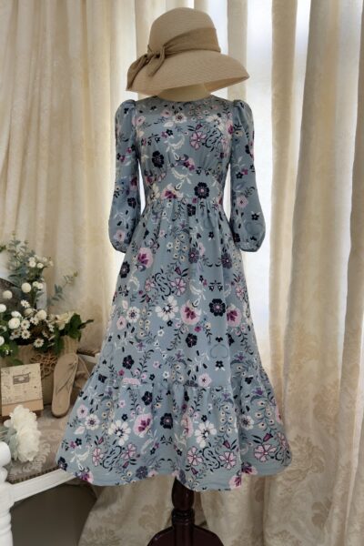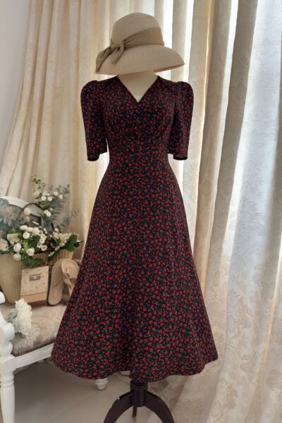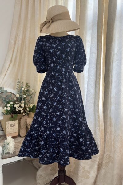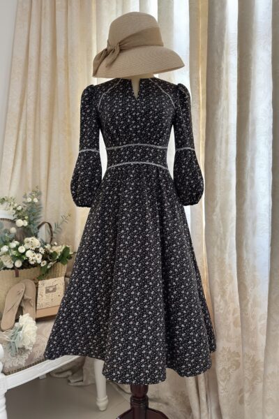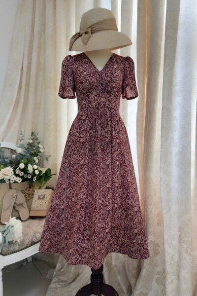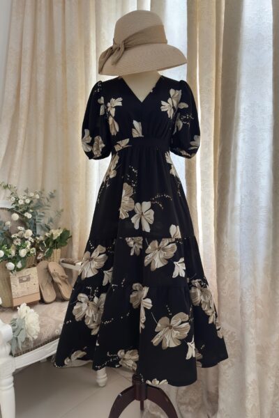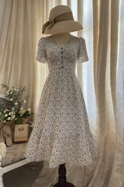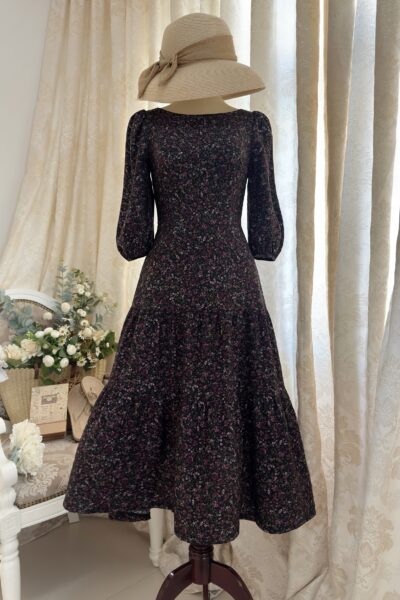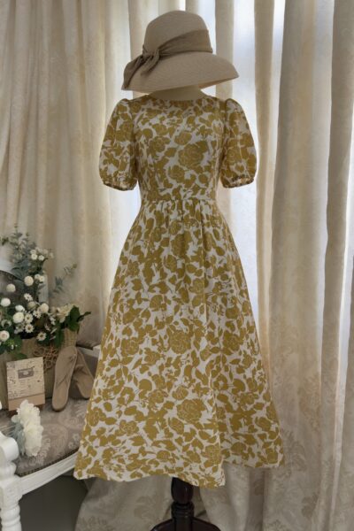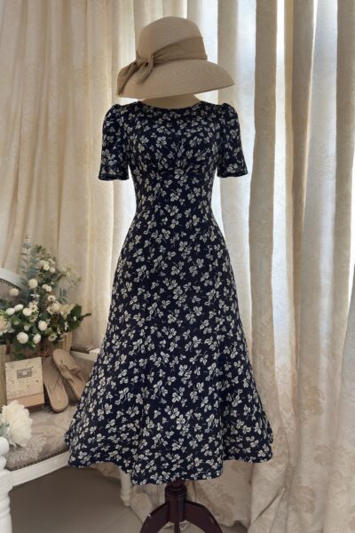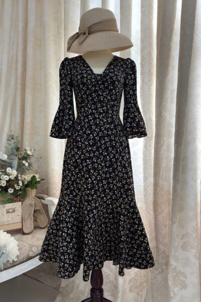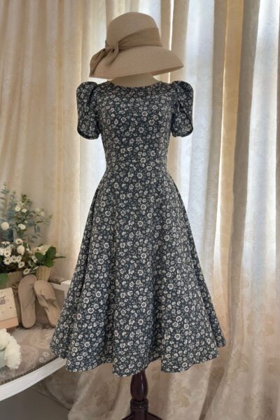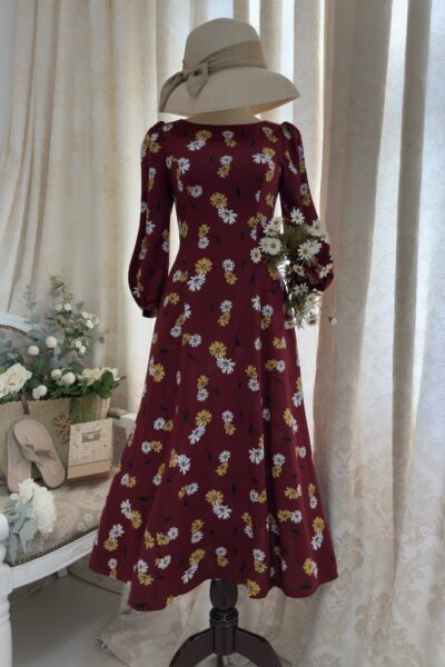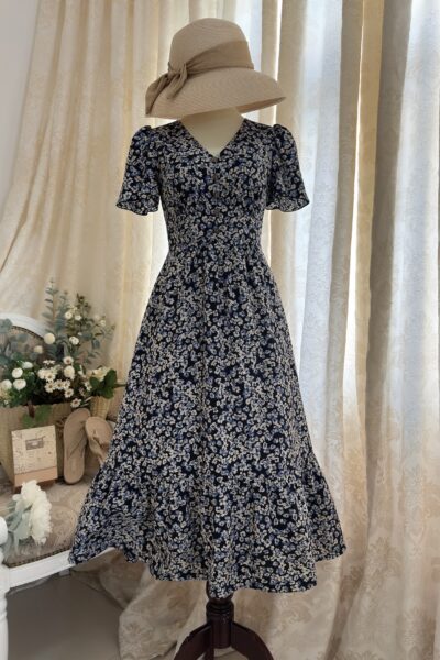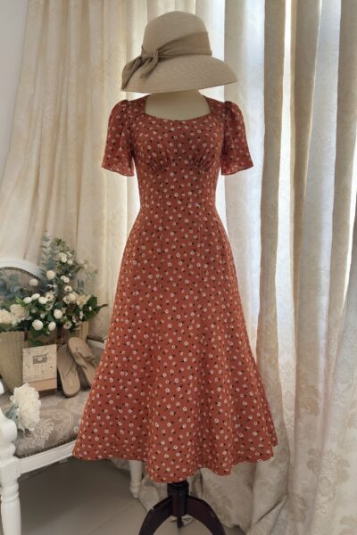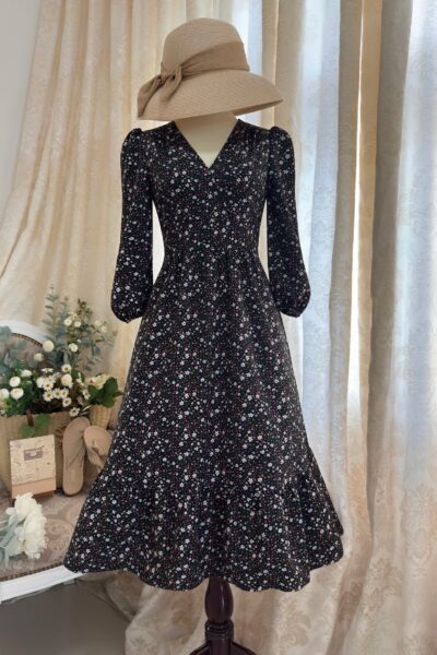 Đầm Midi dáng dài cổ tim, vai chồm, eo cao, lưng có thun, tùng A.