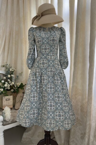 Đầm Midi cổ dún tay lửng phối hông eo thun
