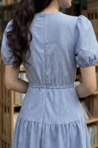Đầm Midi tay phồng dún eo, phối nẹp hông