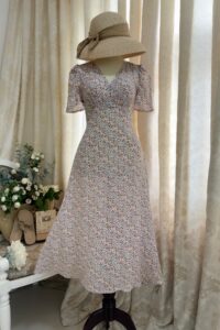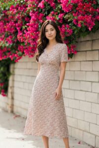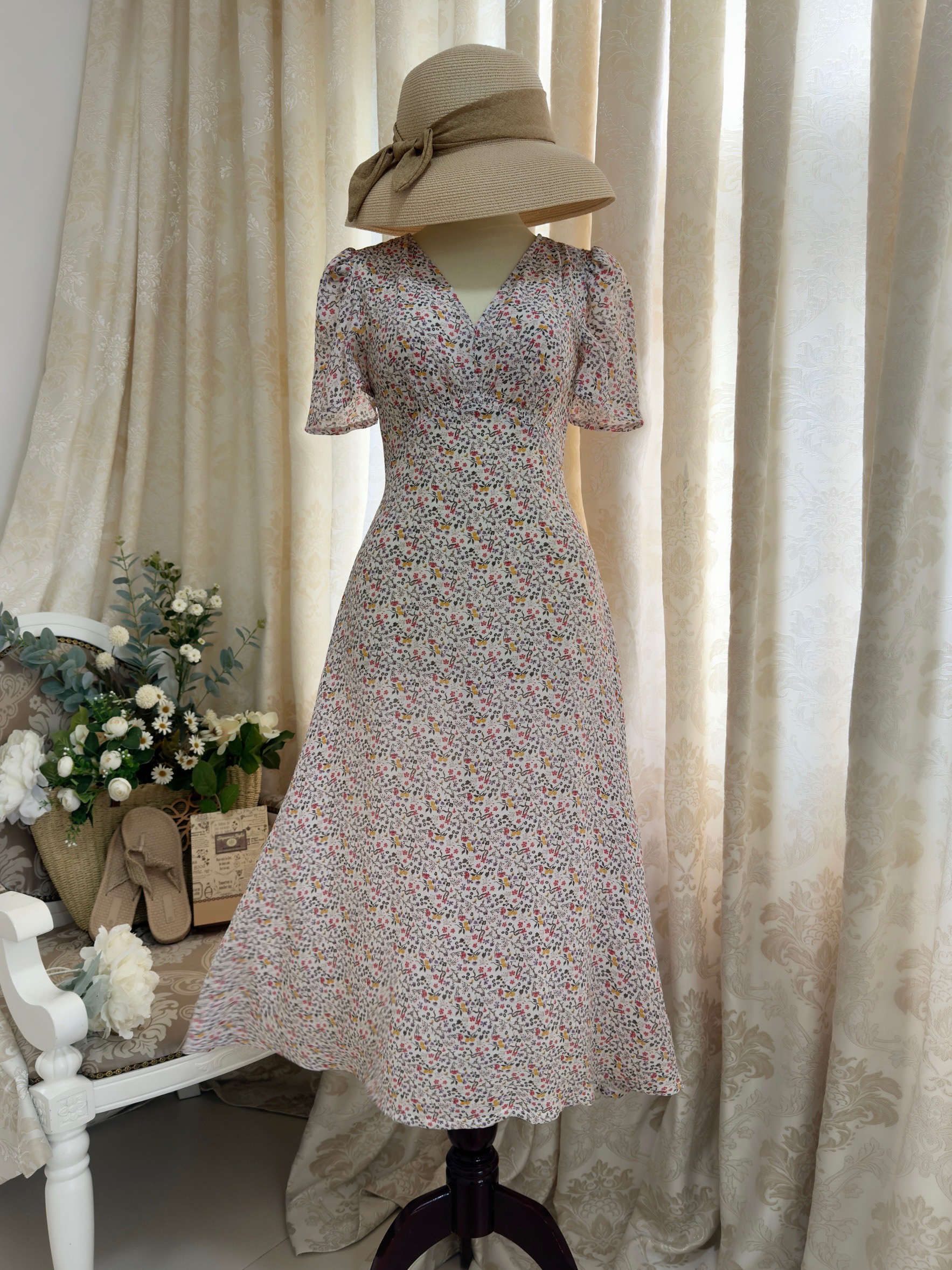 Đầm Midi cổ tim dún ngực eo cao