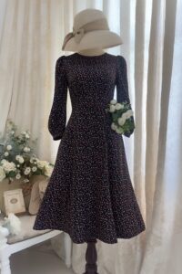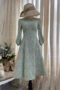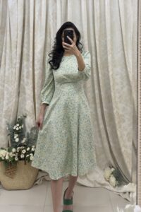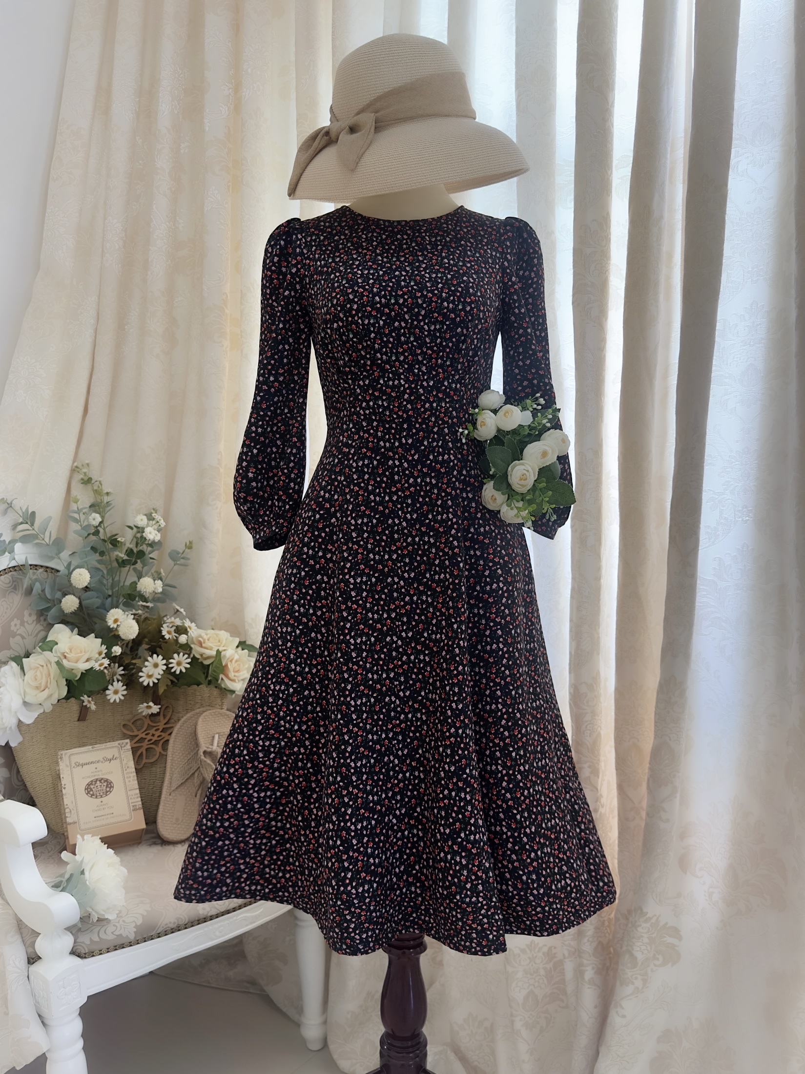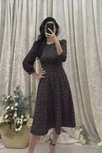 Đầm Midi cổ tròn, nẹp eo xéo, tay lửng tùng 8 mảnh