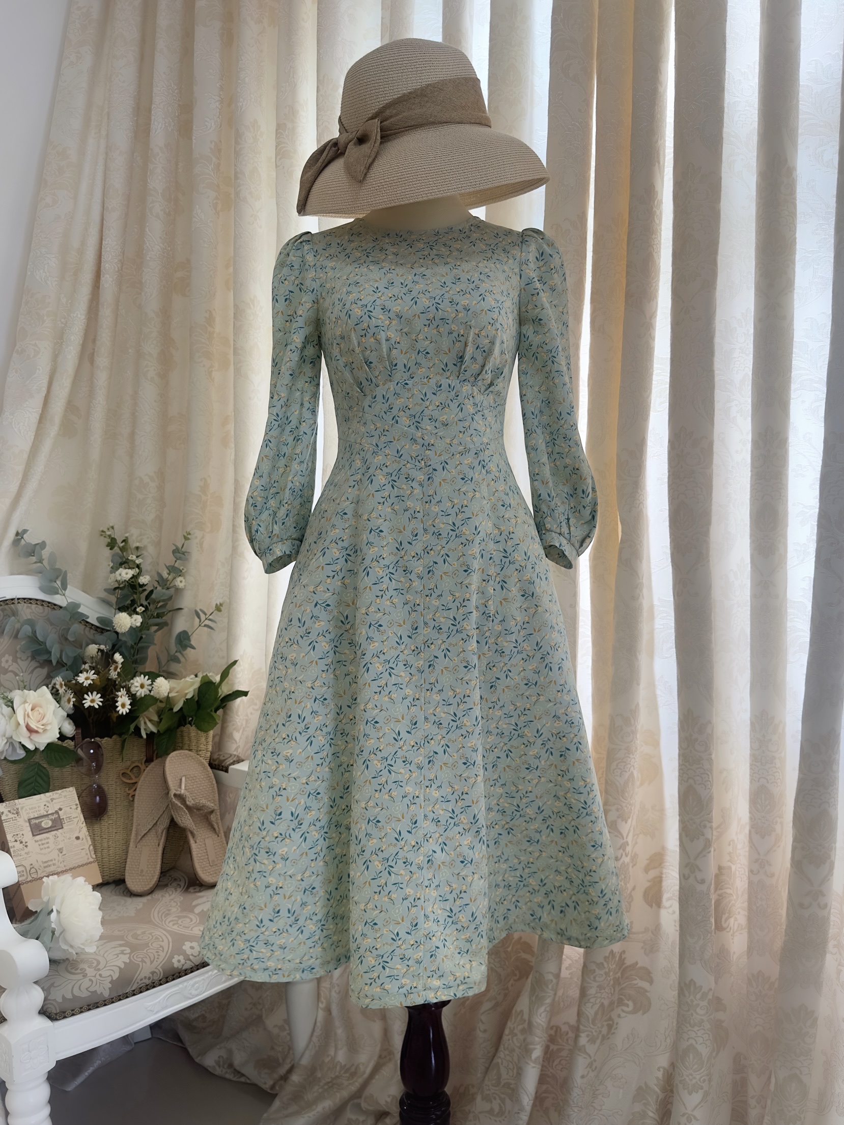 Đầm Midi cổ tròn, nẹp eo xéo, tay lửng tùng 8 mảnh