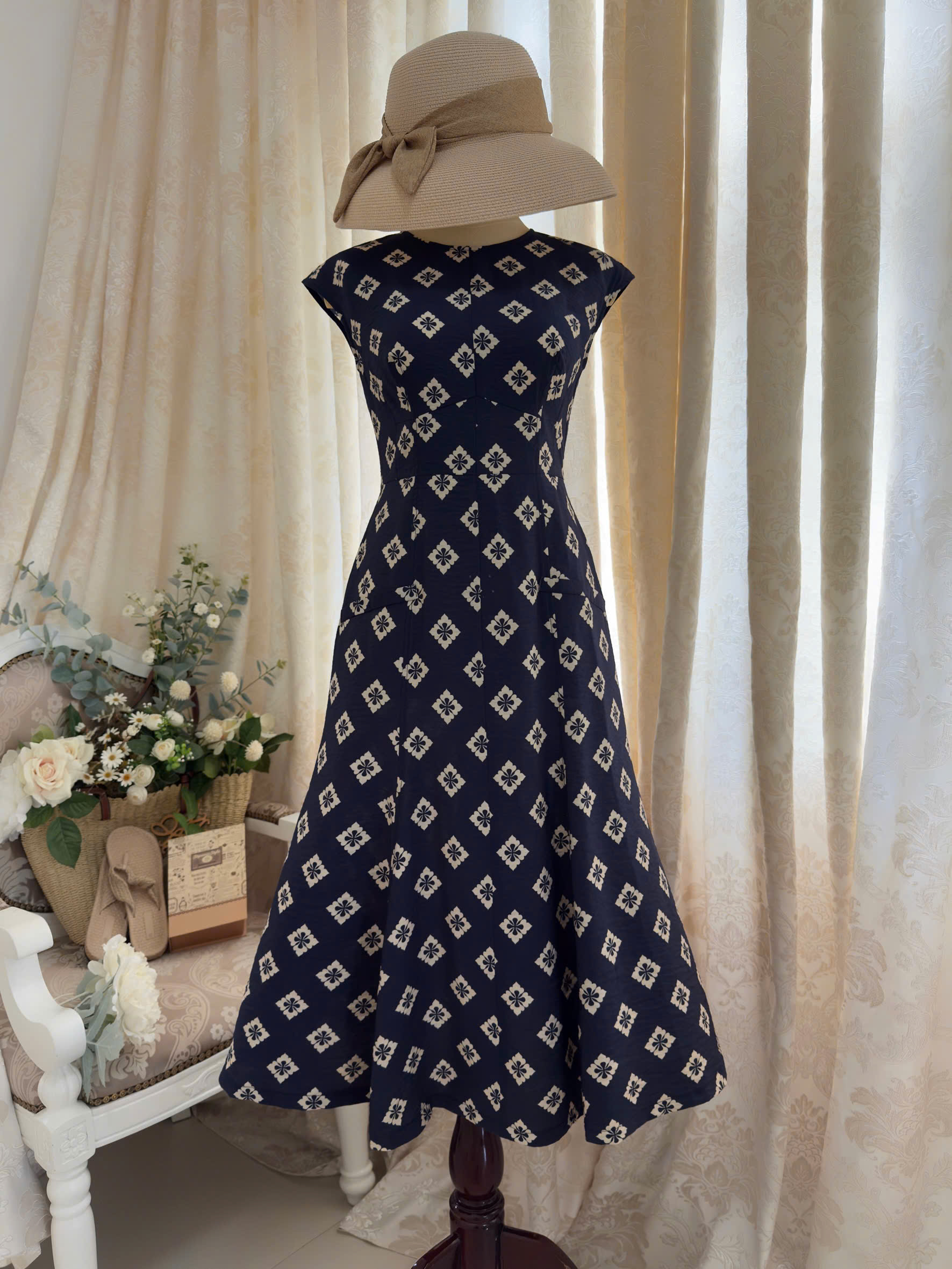 Đầm Midi tay liền cổ tròn eo cao dáng đuôi cá.
