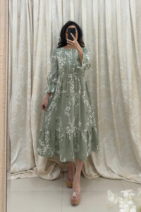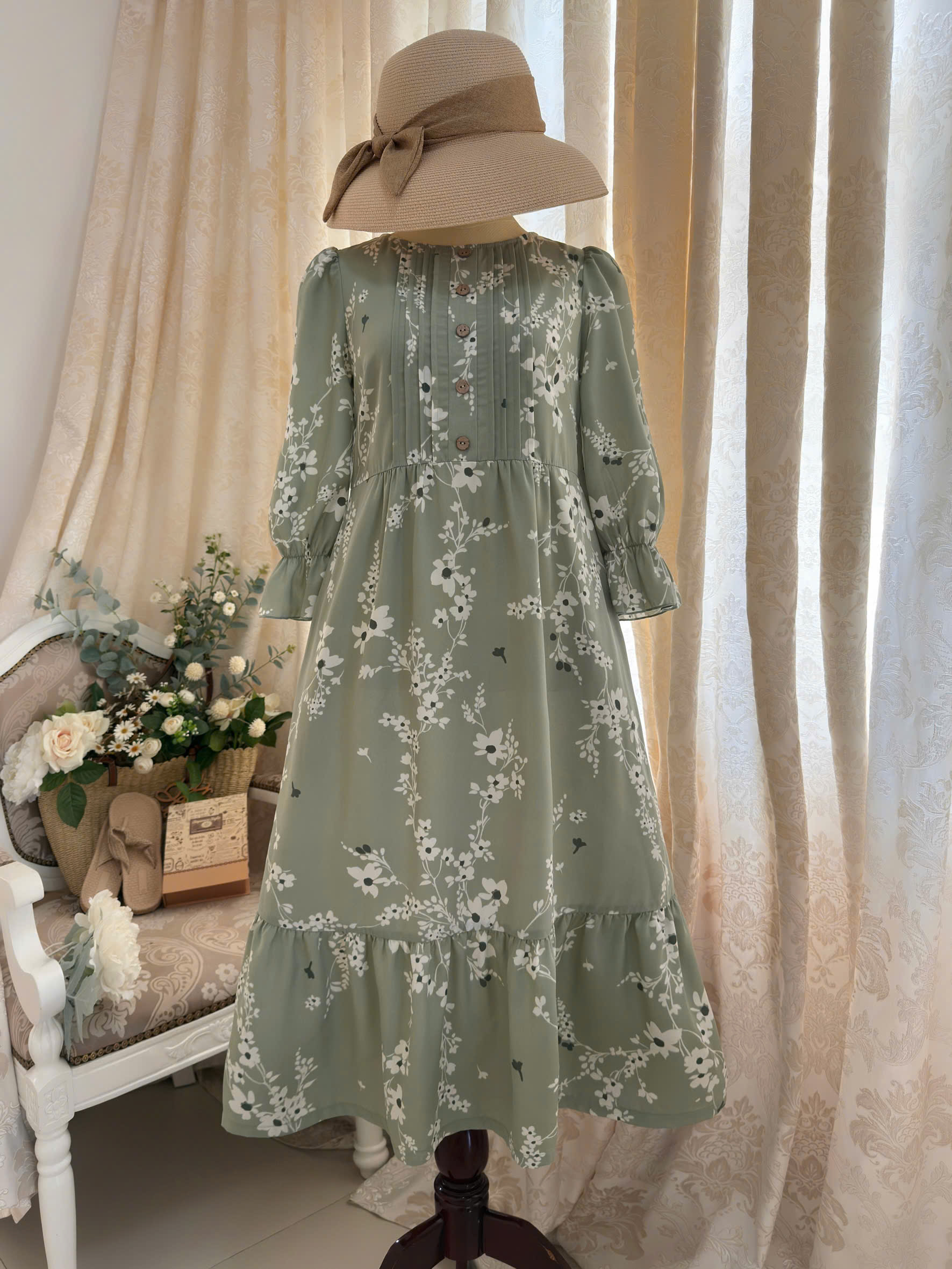 Đầm Maxi cổ thuyền tay dún bèo eo suông.