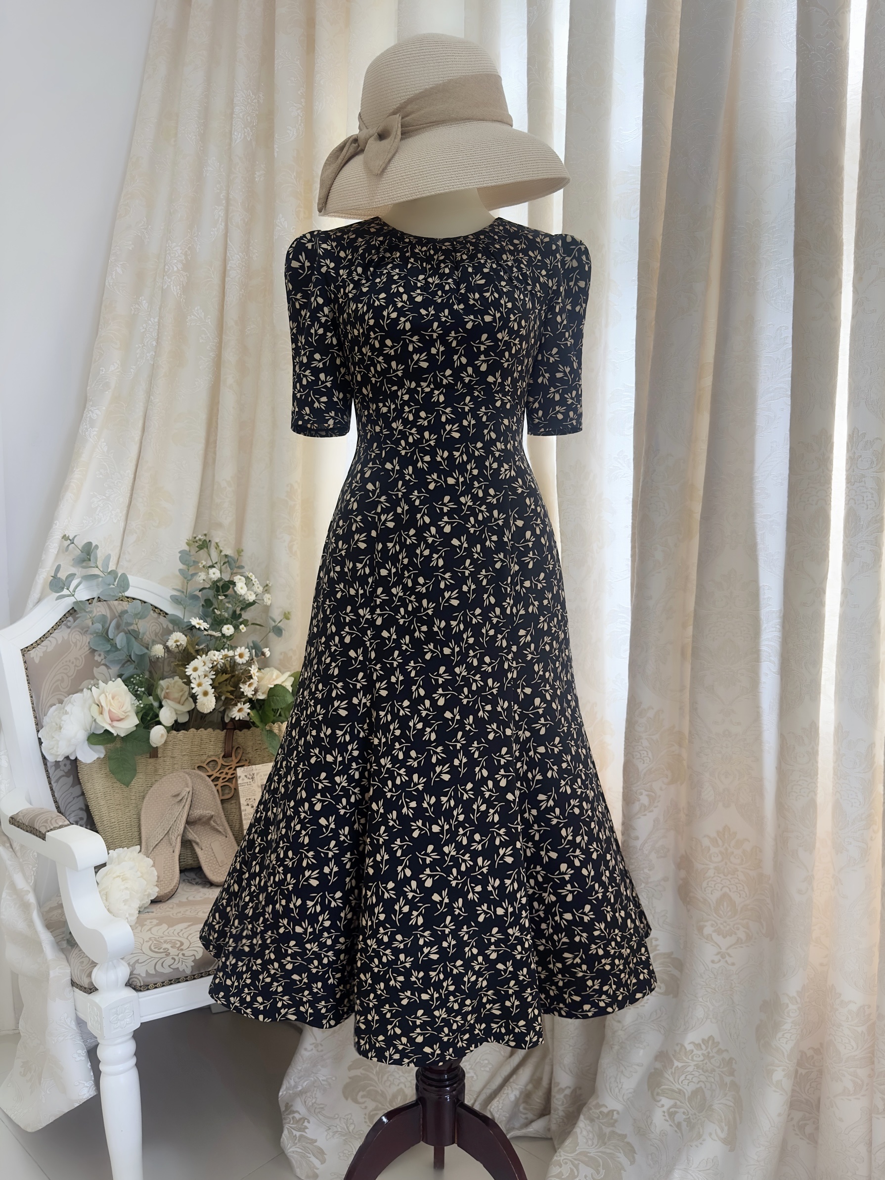 Đầm Midi cổ tròn xếp pli nối chân ngực đuôi cá